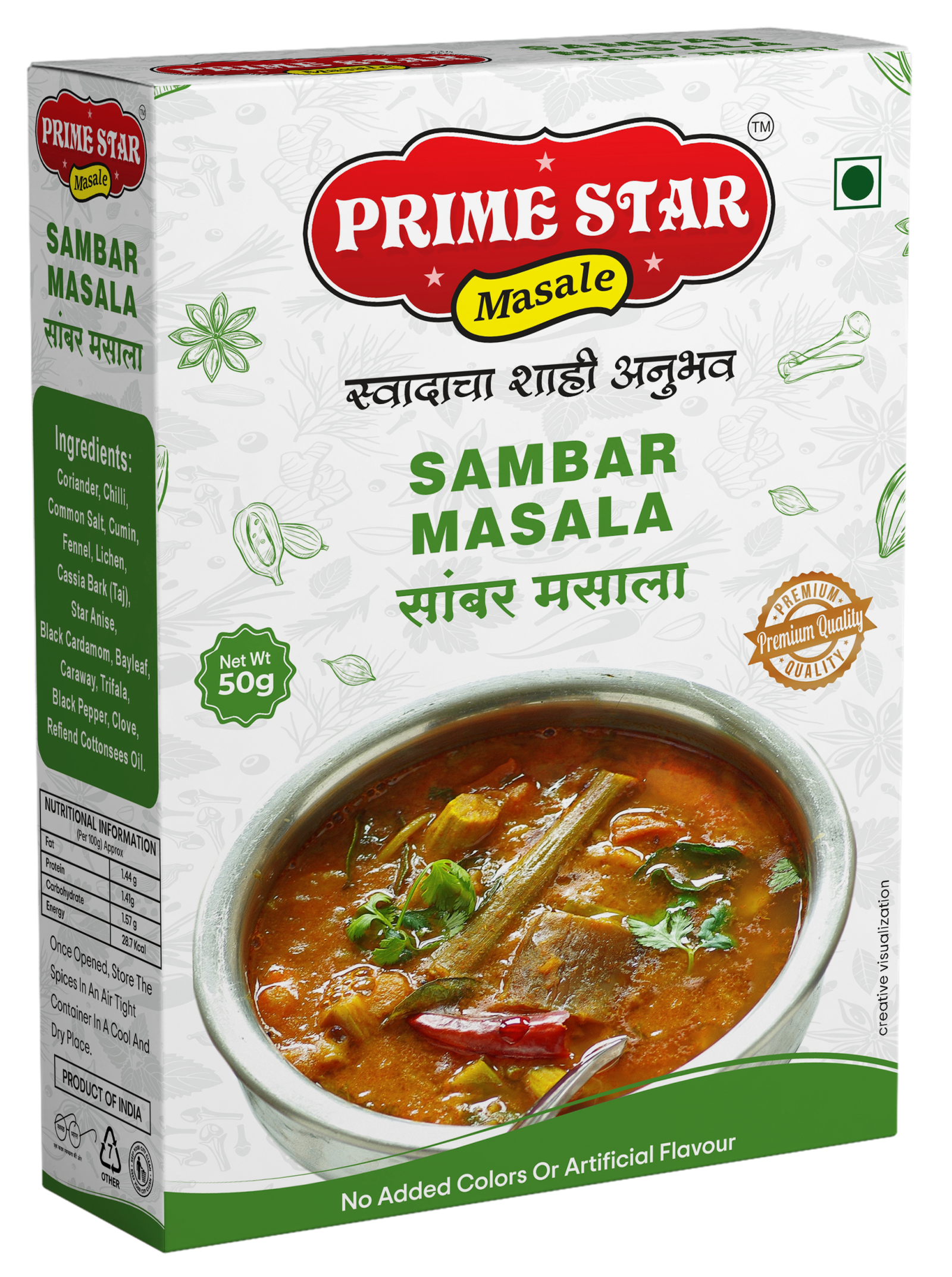 Unlock the deep, earthy, and aromatic flavour that defines traditional South Indian Sambar. Our Sambar Masala is crafted using a time-honored recipe, perfectly blending essential spices like coriander, cumin, fenugreek, and mustard, along with lentils and a touch of asafoetida for a distinct, savoury body. This blend guarantees the right balance of tanginess, earthiness, and mild spice, making your lentil and vegetable stew rich and perfectly satisfying.