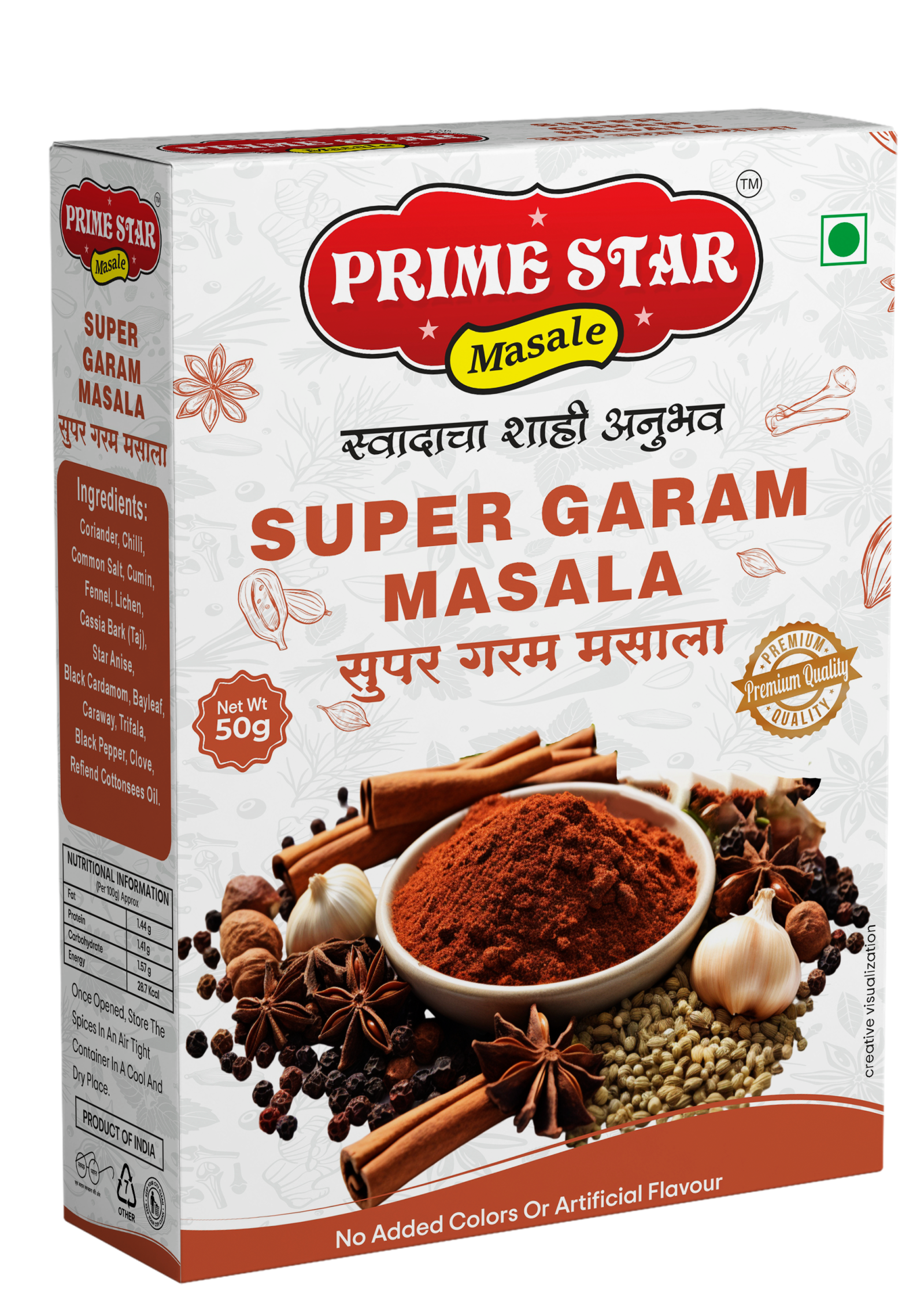Elevate your cuisine with the finest finishing touch. Our Super Garam Masala is a meticulously crafted blend using only the highest grade, whole aromatic spices—including potent Veelaychi (Cardamom), fragrant Dalcheenee (Cinnamon), and Jaavitri (Mace). Unlike common blends, this formula is intensely fragrant and minimally heated, designed to be sprinkled onto dishes just before serving to unlock a warm, complex, and intoxicating aroma that defines authentic, gourmet Indian cooking.